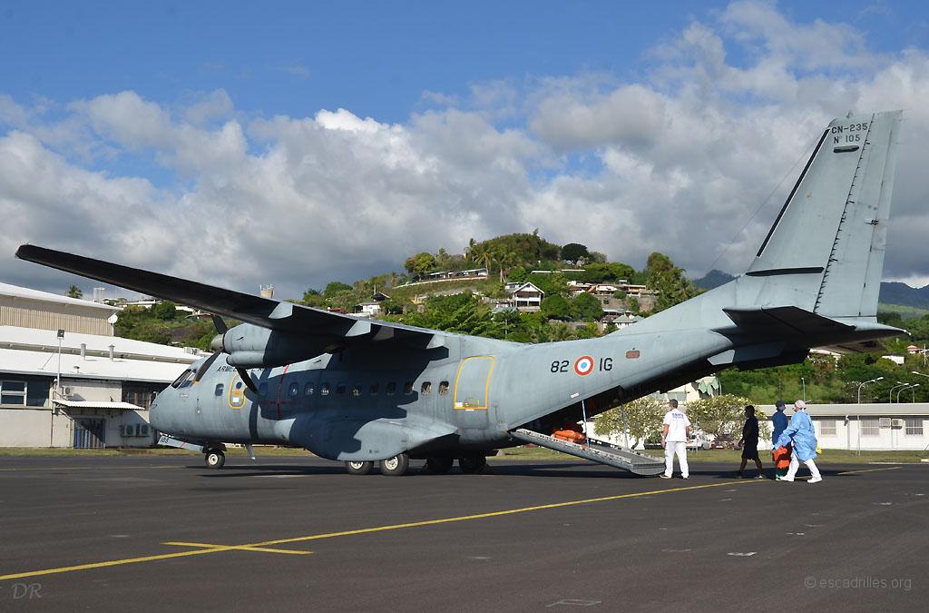 Les CN235-200 équipent le Maine depuis janvier 1996, les dernières Caravelle ayant été décommissionnées en 1995. Depuis le départ des Super Puma en septembre 2011, et celui du Fennec en 2012, l’ET 82 compte uniquement sur ses deux CASA pour réaliser l’ensemble des missions qui lui incombent. La population connait surtout les deux avions gris pour les fréquentes EVASAN qu’ils accomplissent. Le CN-235 peut en effet utiliser une trentaine de pistes de Polynésie.