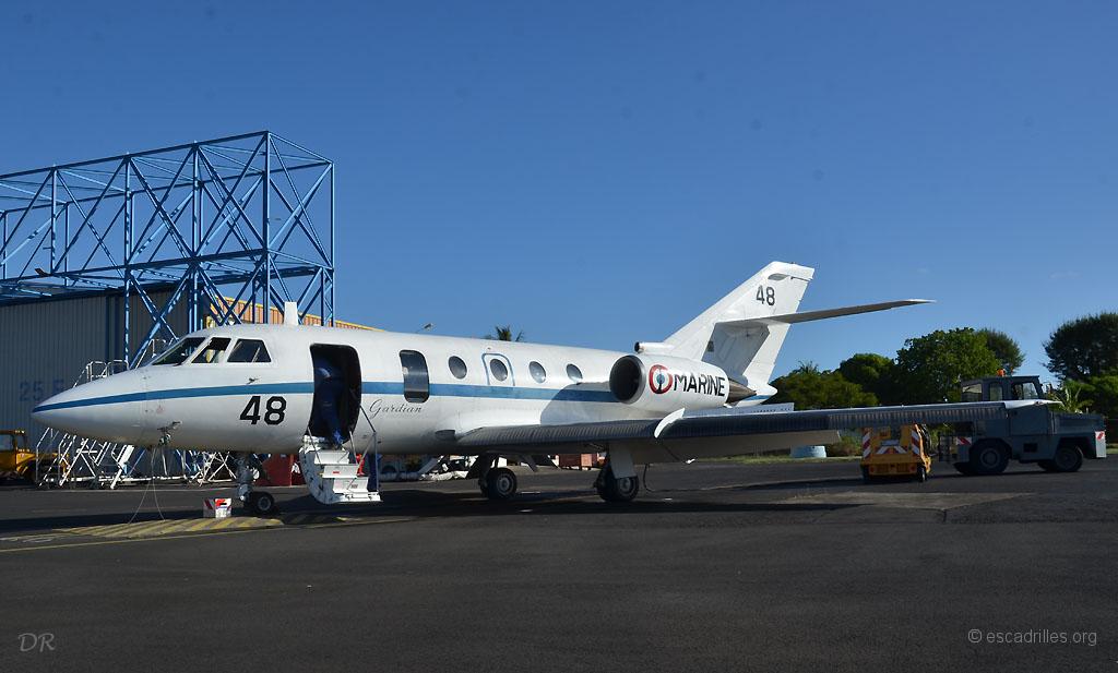 Du côté de l’aéronautique navale, la flottille 25F a le privilège d’utiliser les mêmes avions depuis sa recréation en Polynésie: il s’agit bien évidemment des Dassault Gardian, directement issus du développement des Falcon 20G de l’US Coast Guard. Ces biréacteurs parfaitement adaptés à la surveillance et au secours maritimes sont utilisés dans tout l’espace océanien : deux appareils et des équipages de la 25F sont détachés en Nouvelle-Calédonie, assurant aussi la surveillance de la ZEE de Wallis-et-Futuna.