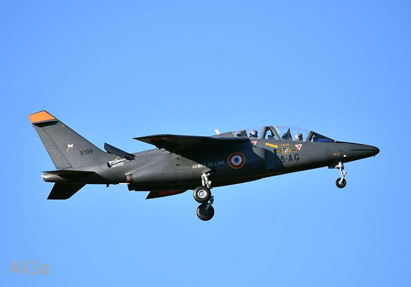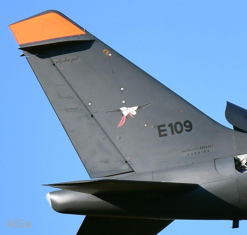 Surprise de ce mois d’octobre, un Alphajet de la ‘Huit’ portant à nouveau la cigogne japonaise de la SPA 73, escadrille qui a pourtant migré vers le GC 1/2 de Luxeuil, et ses -5F. Le 2/7 Nice étant passé par pertes et profits.