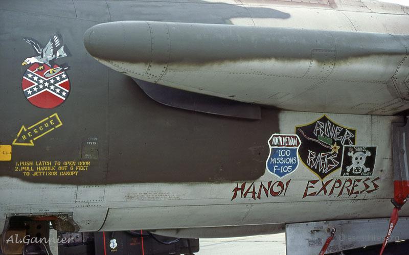 Différence évidente, outre le lieu, chaque avion emportait une poignée de bombinettes d’exercice sur son Multiple Ejector Rack, de quoi entraîner les pilotes pour le cas où une hypothétique ‘crise de Berlin’ se produirait encore. L’année 1990 était encore loin, et lorsque maints unités de l’ANG reprirent du service actif au Moyen-Orient, les F-105 avaient déjà rejoint le cimetière de Davis-Monthan depuis belle lurette : c’est en février 1984 que les derniers Thud, ceux du 466th TFS de l’AFRes, éteignirent leur réacteur une fois pour toutes.