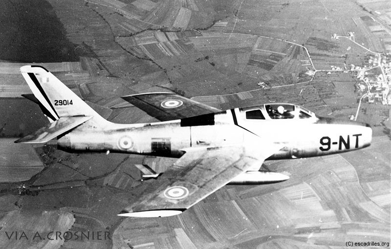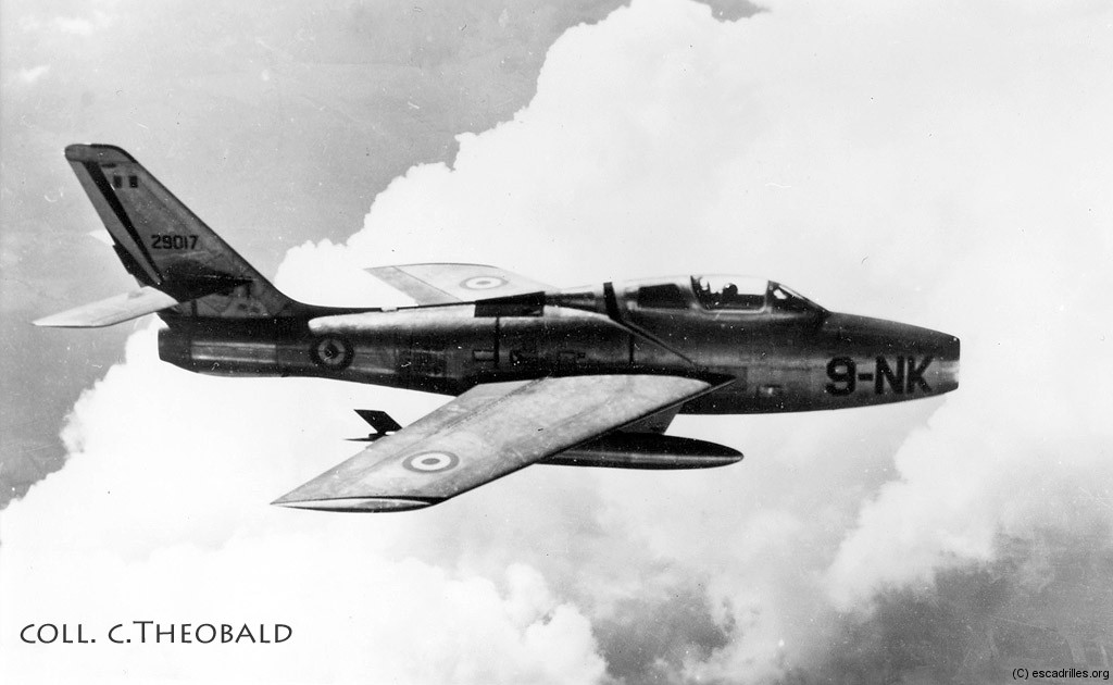 Donc, la 9 est une escadre de chasse, et le F-84F est un avion de chasse. Oui, sauf que quand on éprouve en l’air les F-84, qu’ils soient E, G ou F, on s’aperçoit que l’avion perd rapidement de sa vitesse quand on tire sur le manche. C’est un avion lourd. Certes, il emporte bien plus de pétrole que l’Ouragan ou le Mystère, mais c’est là sa seule supériorité.