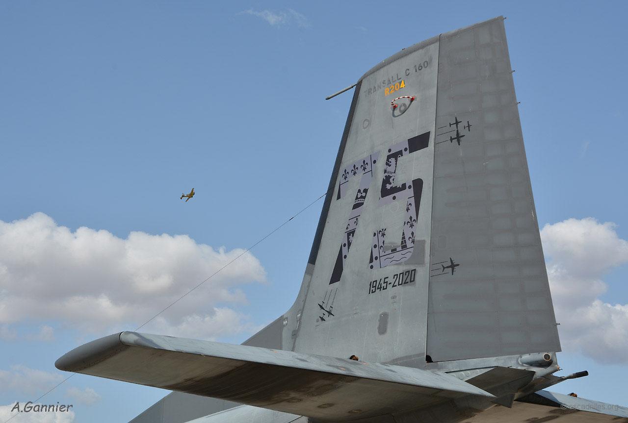 Présent aux côtés du Transall décoré spécialement, un Stearman PT-13 et un Beechcraft symbolisaient les débuts de l’escadron, ce dernier ayant été la première monture du Poitou, en 1945.