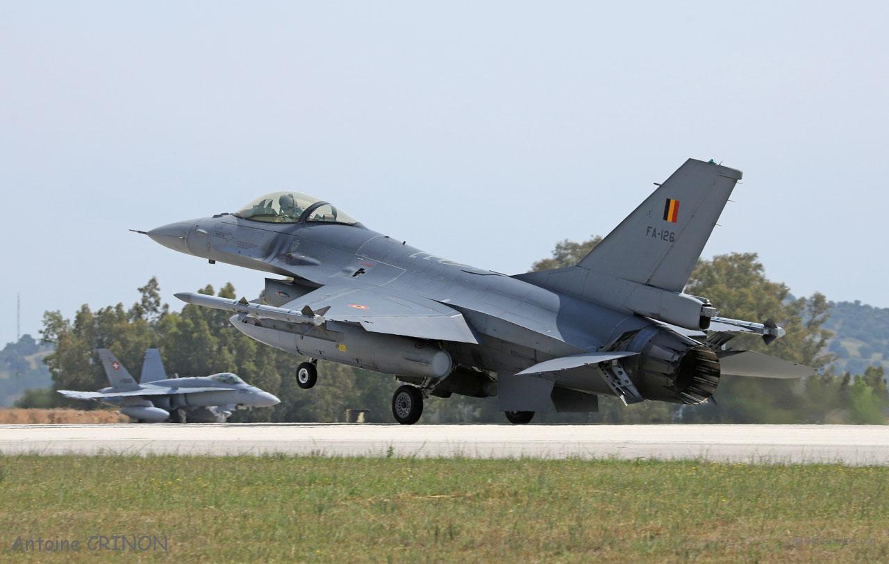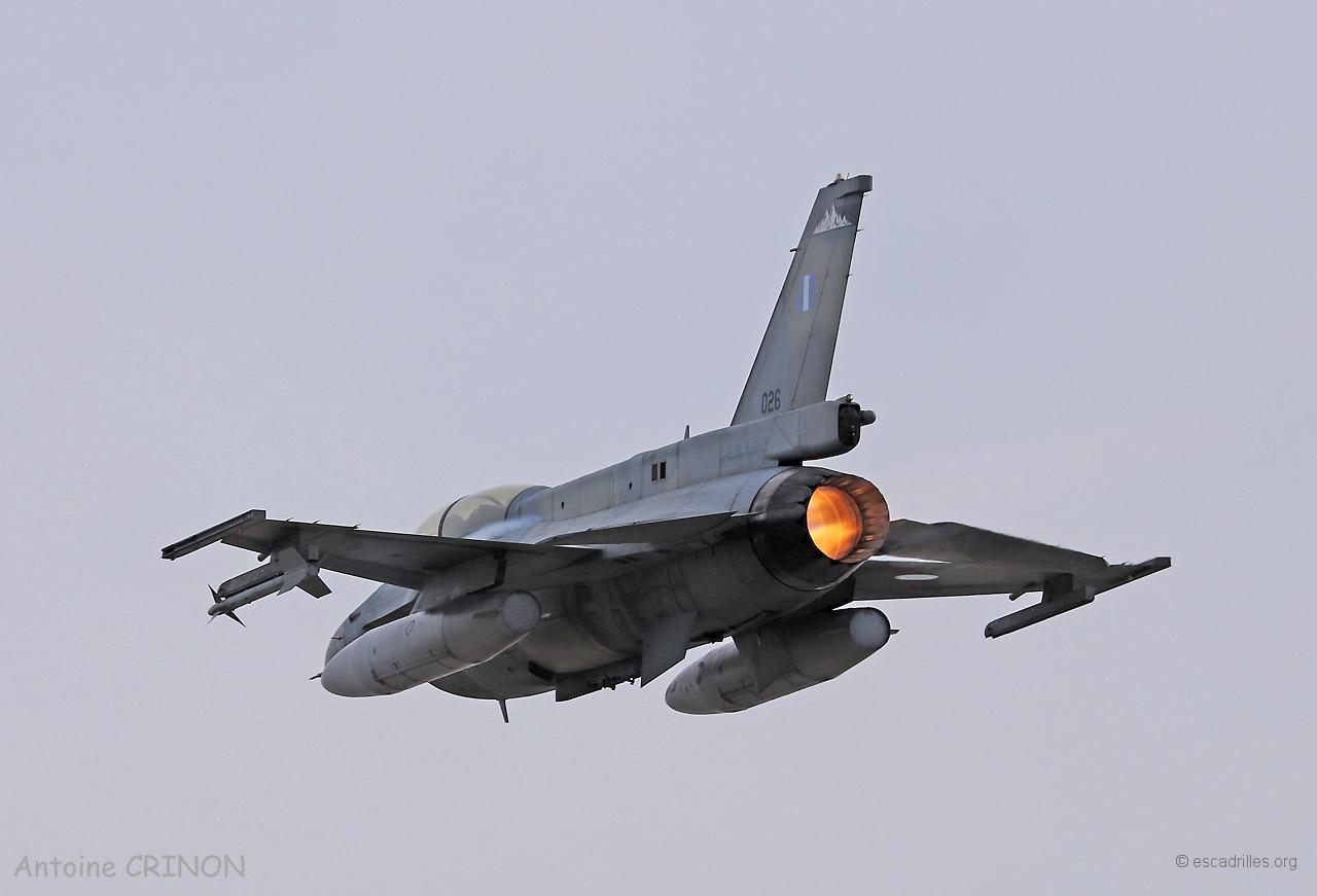 Quatre F-16 grecs ont décollé à 8h30 pour une mission en local, le lisse et le mono-bidon sont rentrés à 9h00 et les deux avec bidons sous voilure vers 9h30.